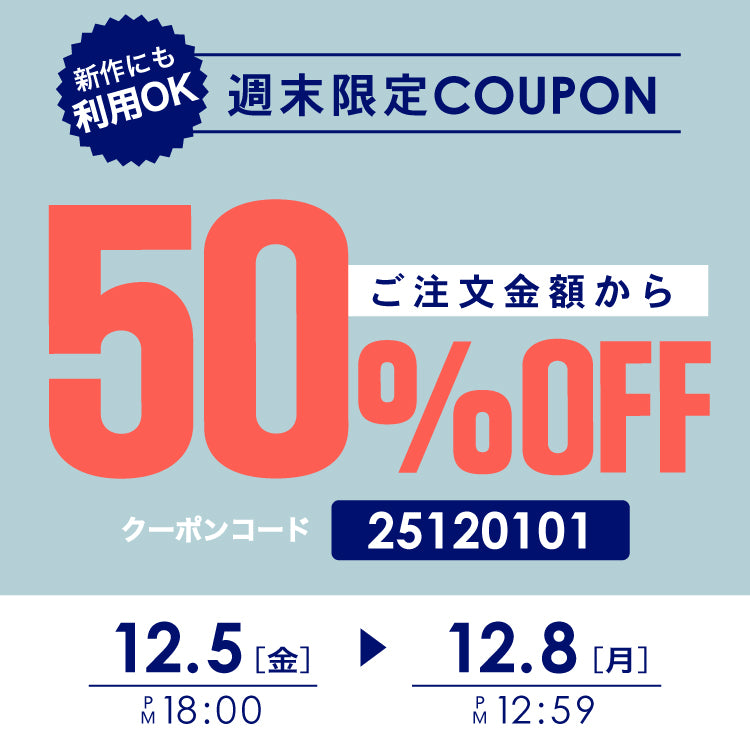 週末限定!50%OFFクーポン配布中‼