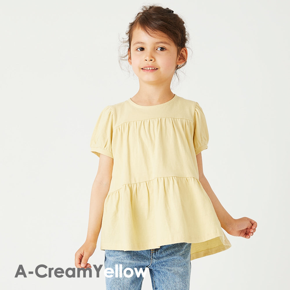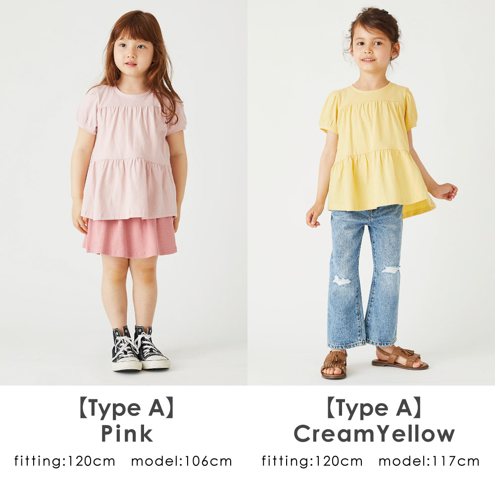 | サイズ | <TypeA.ティアードデザイン> 90 cm 総丈41.5 袖丈13.0 100cm 総丈43.0 袖丈13.5 110cm 総丈46.0 袖丈14.0 120cm 総丈49.0 袖丈14.5 130cm 総丈52.0 袖丈15.0 140cm 総丈56.5 袖丈 16.0 150cm 総丈60.5 袖丈 17.0 <TypeB.袖フリルデザイン> 90 cm 総丈38.5 袖丈13.0 100cm 総丈40.0 袖丈14.0 110cm 総丈43.0 袖丈15.0 120cm 総丈46.0 袖丈16.0 130cm 総丈49.0 袖丈17.0 140cm 総丈53.0 袖丈 18.5 150cm 総丈57.0 袖丈 19.5 <TypeC.胸切替デザイン> 90 cm 総丈(後)40.5 総丈(前)34.5 袖丈5.0 100cm 総丈(後)42.0 総丈(前)36.0 袖丈5.0 110cm 総丈(後)45.0 総丈(前)39.0 袖丈5.0 120cm 総丈(後)48.0 総丈(前)42.0 袖丈5.0 130cm 総丈(後)51.0 総丈(前)45.0 袖丈5.0 140cm 総丈(後)55.5 総丈(前)49.0 袖丈5.5 150cm 総丈(後)59.5 総丈(前)53.0 袖丈5.5 <TypeD.スカラップデザイン> 90 cm 総丈34.5 肩幅 36.5 100cm 総丈37.0 肩幅 37.5 110cm 総丈40.0 肩幅 39.5 120cm 総丈43.0 肩幅 41.5 130cm 総丈46.0 肩幅 43.5 140cm 総丈 50.0 肩幅 46.5 150cm 総丈 54.0 肩幅 49.5 |