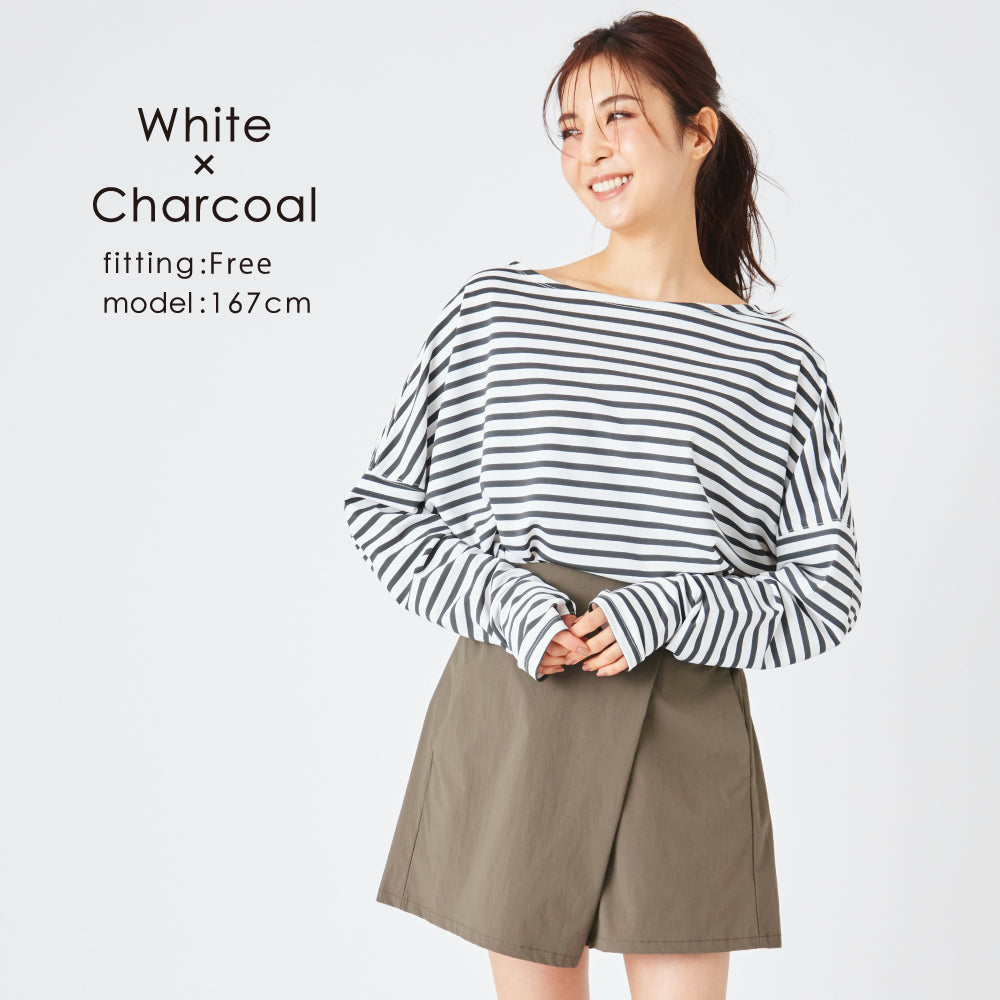デイリーウェアとしても着用できるように襟元をボートネックに。デコルテが綺麗に見えるこだわりシルエット!