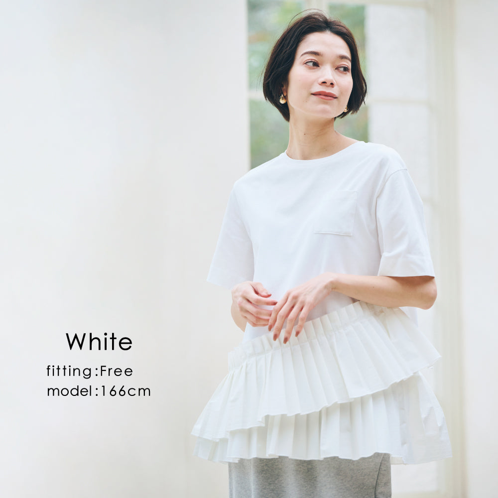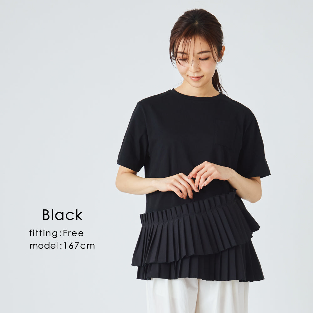 【1枚でサマになる】プリーツドッキングTシャツ